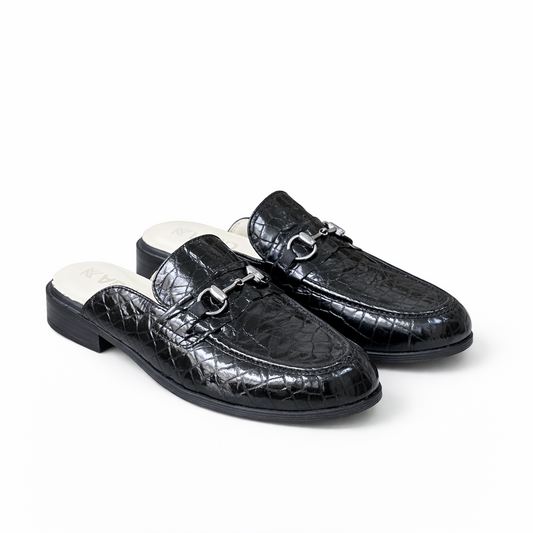 0118 mule en cuir Femme noir croco