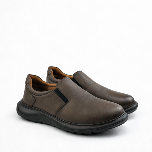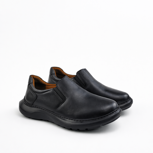 0102 chaussure confort en cuir noir/tabac