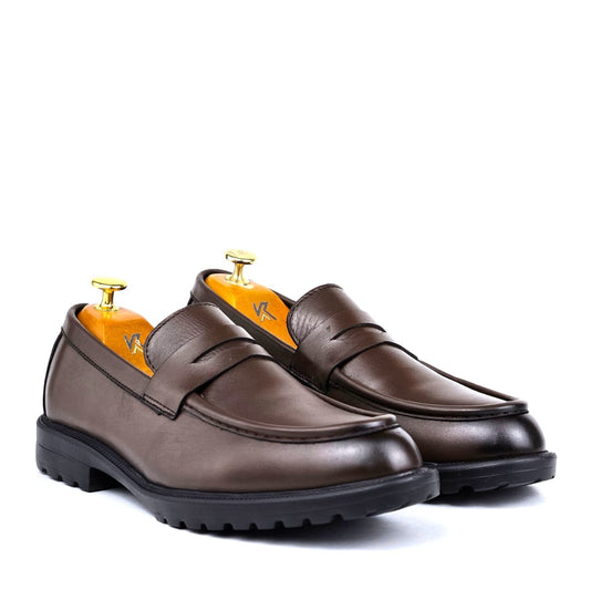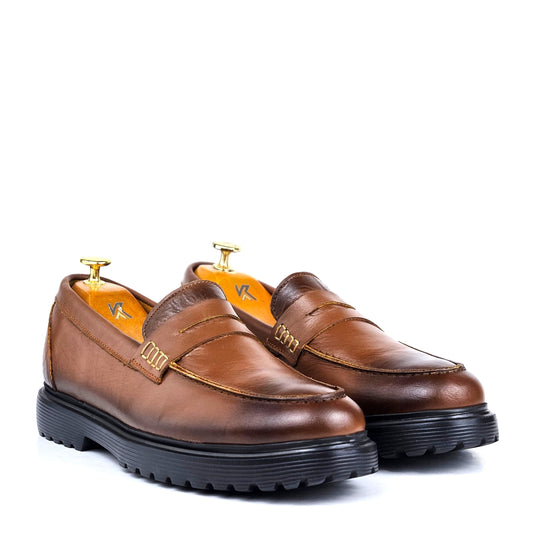 066 Chaussures Homme Mocassins sports en cuir tabac