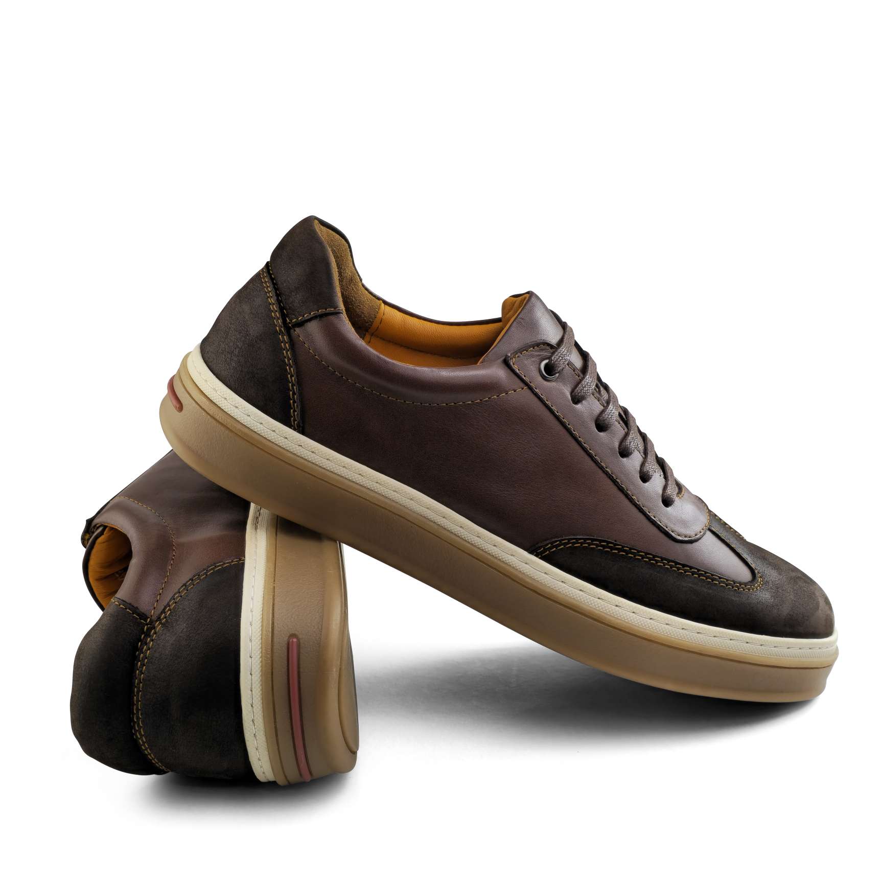 0235 Un Sneaker typé et stylé, de cuir de vachette Marron élégant et moderne monté sur une forme élancée au bout rond. Un sneaker homme détente classique confortable, souple, idéale pour tout type de pantalon habillé. Elle est intégralement doublé en cuir de vachette.