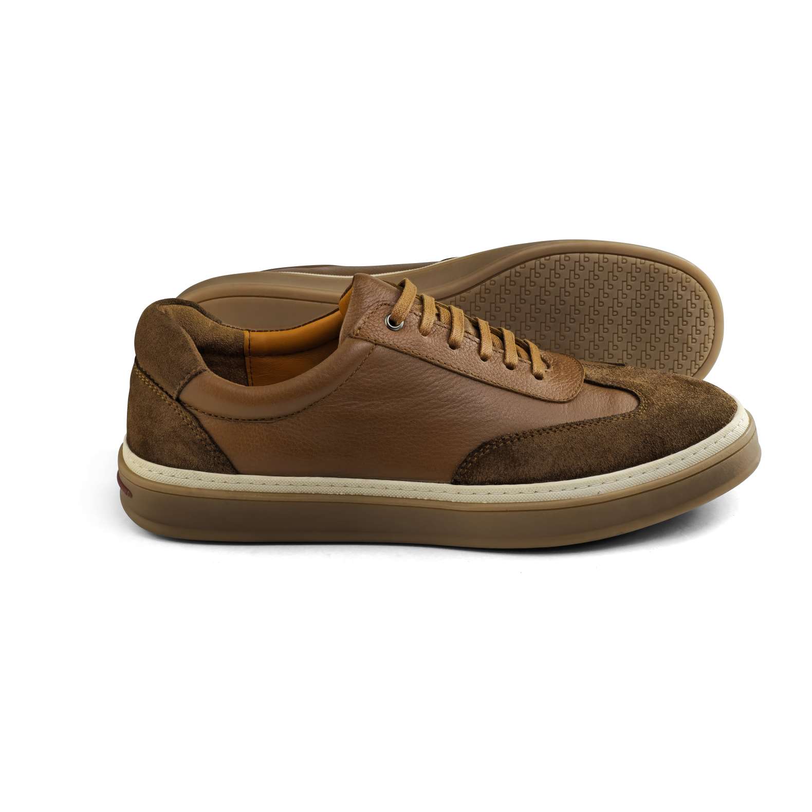 0235 Un Sneaker typé et stylé, de cuir de vachette Marron élégant et moderne monté sur une forme élancée au bout rond. Un sneaker homme détente classique confortable, souple, idéale pour tout type de pantalon habillé. Elle est intégralement doublé en cuir de vachette.