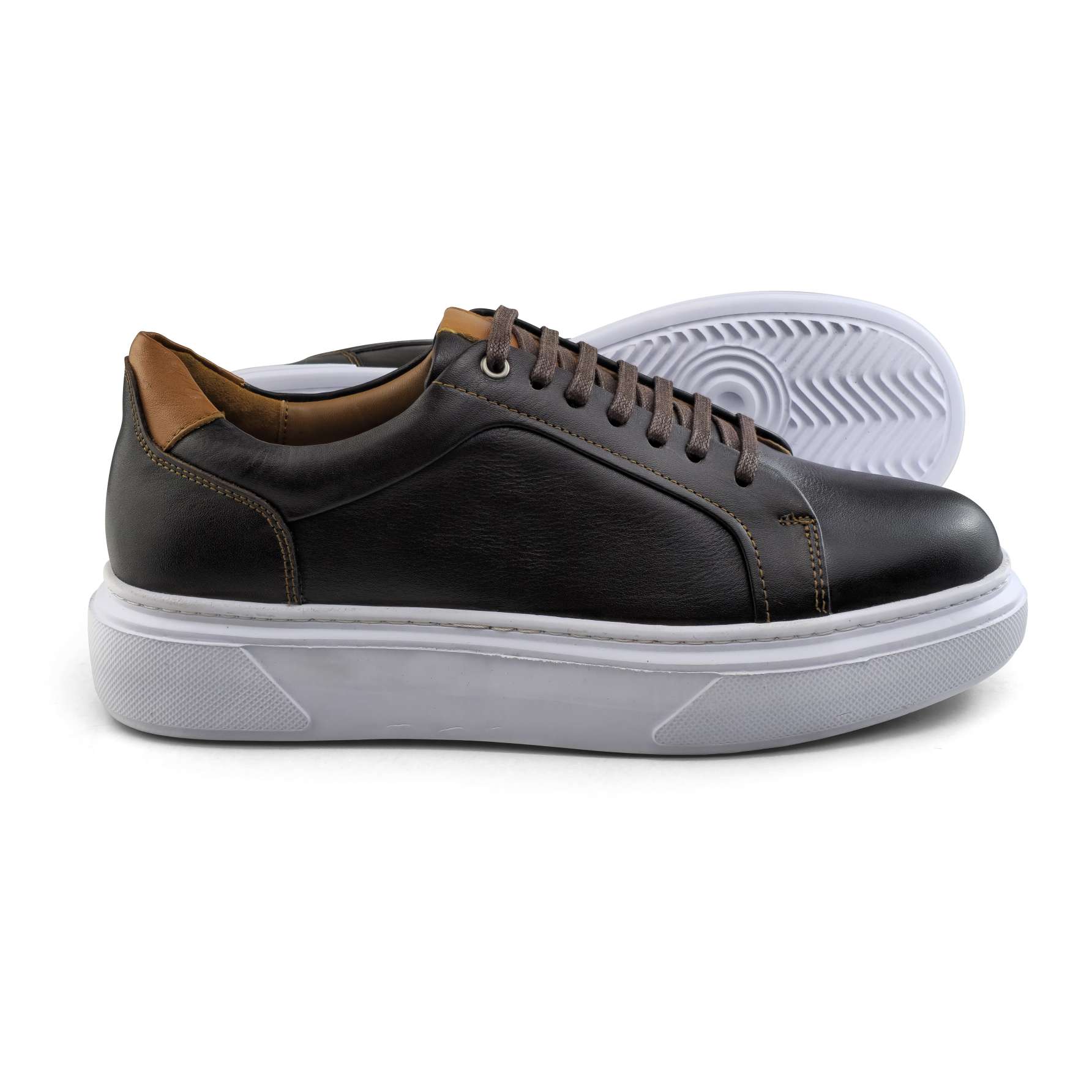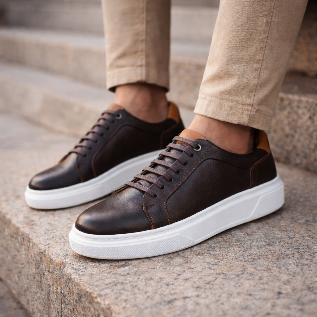 038 Chaussure Sneaker Homme en cuir noir/marron