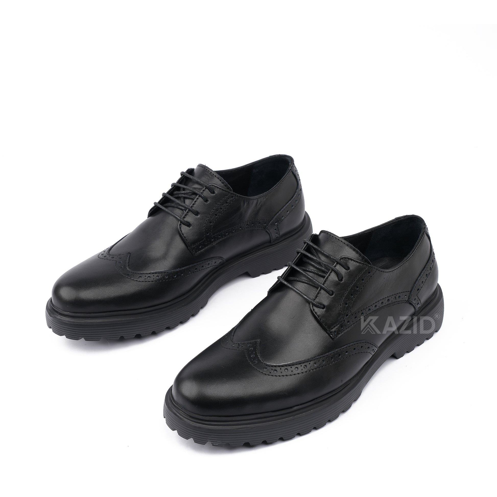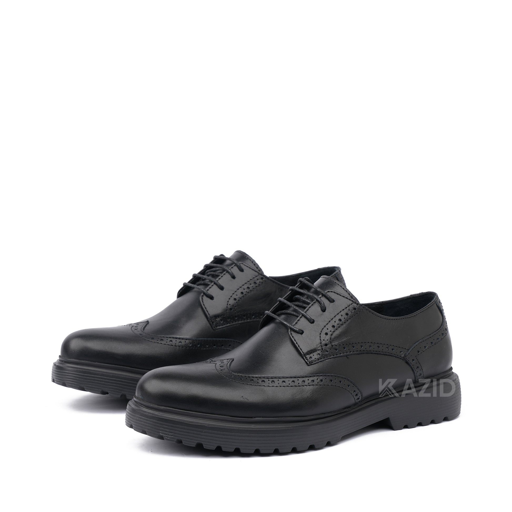 Un derby ou Richelieu typé et stylé, de cuir noire élégant et moderne monté sur une forme élancée au bout rond. Une chaussure de ville classique confortable, souple, idéale pour tout type de pantalon habillé. Elle est intégralement doublé en cuir de vachette