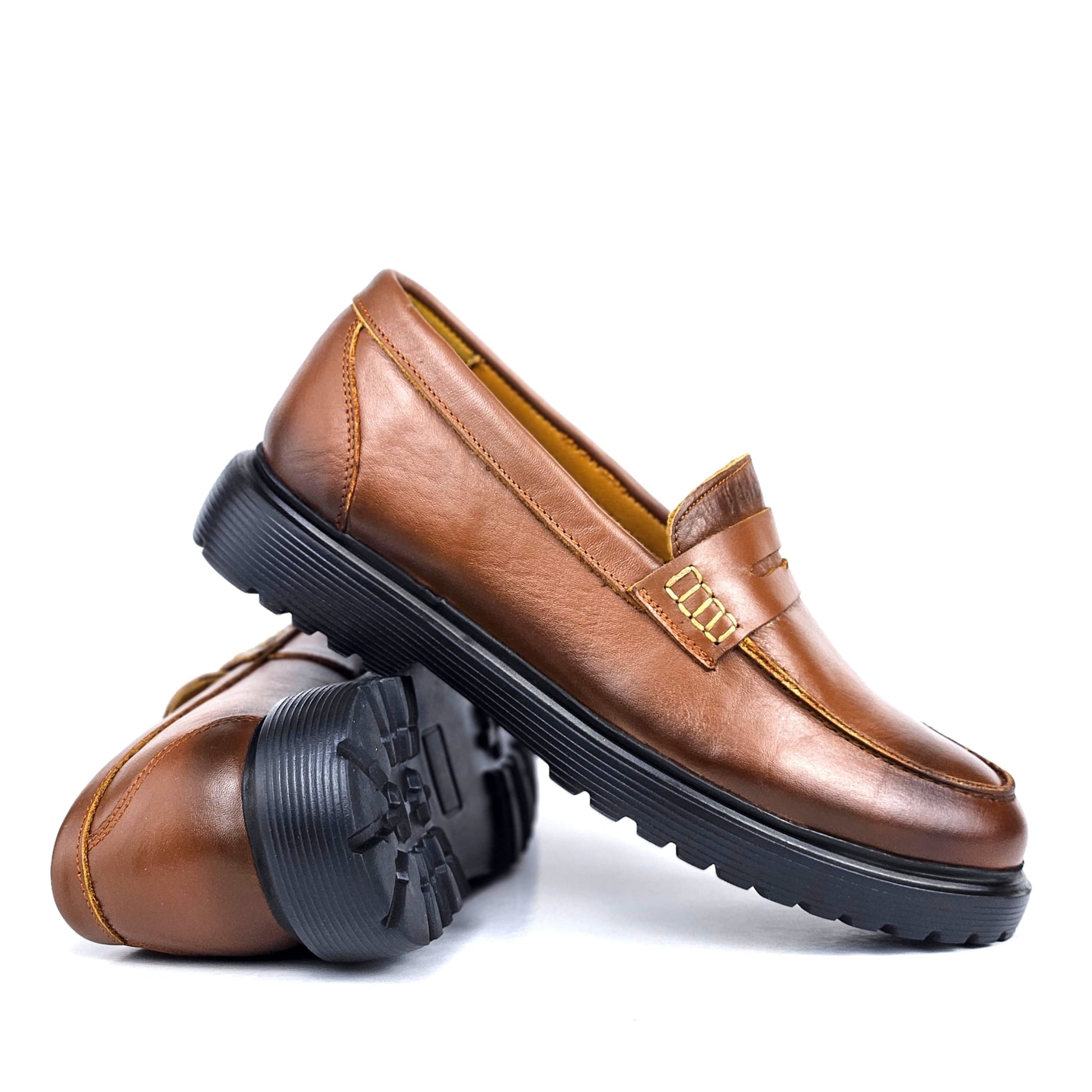 066 Chaussures Homme Mocassins sports en cuir tabac